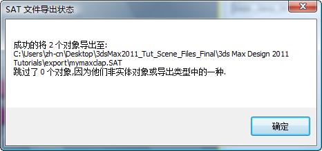 3ds Max 报告这些对象成功导出。