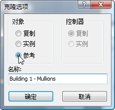 “对象”组中,选择“参考”。将对象名更改为 Building 1 - Mullions,然后单击“确定”。