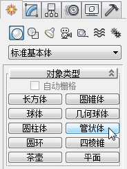 “对象类型”卷展栏上,单击“管状体”。 “管状体”按钮高亮显示,表明其已激活,可以使用。