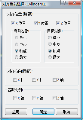 - 在“对齐当前选择 (Cylinder01)”对话框
