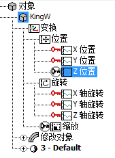 此时,将设置可设置关键点轨迹,以便可同时制作王沿其 X 位置和 Y 位置(但不是在 Z 位置)旋转的动画。如果不希望王输: