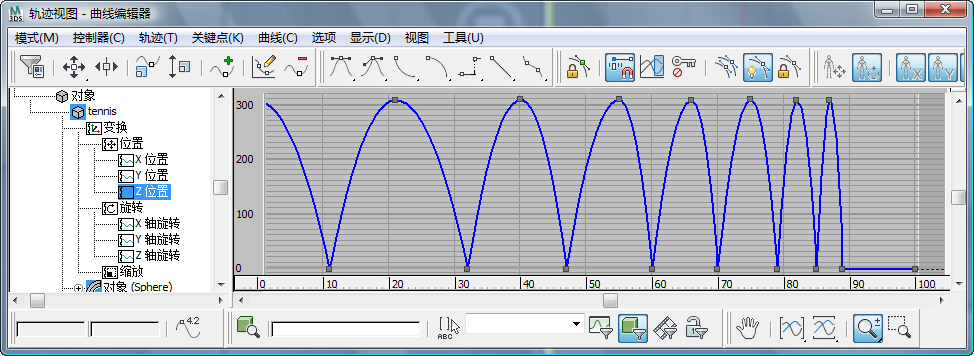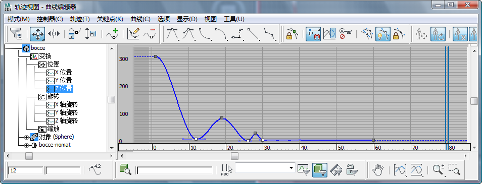 “控制器”窗口中,单击“Z 位置”轨迹以在曲线窗口中显示此曲线。