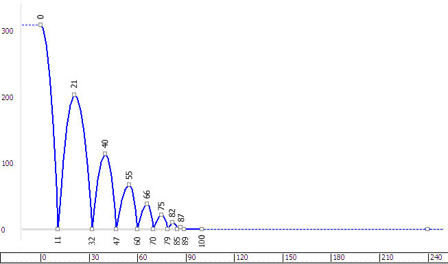 这些新值是否现实?将从增强曲线获得的结果与实际网球的图示进行比较,似乎在现实生活中,网球损失能量和反弹高度的速度远远快于我们的模拟。如果逼真度成为问题,请考虑为每次反弹创建关键帧,就像针对草地球一样。但是,如果您的主要问题是创建整体印象,则增强曲线是非常有用的快捷方式。