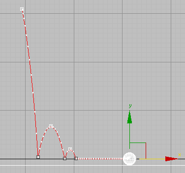 此场景包含一个网球以及一个充当地面的平面。球已具有动画效果,但它一直保持反弹回到大约相同的高度:该场景尚未针对能量的正常损失建模。(随着球的运动,其反弹幅度会变得比较接近:关键帧的间距基于上面显示的现实世界的图示,但是反弹高度不会调整。)