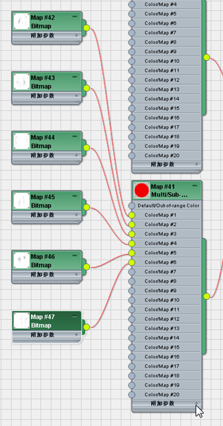 (最大化显示),这样您就可以同时查看材质节点和多维/子贴图节点。