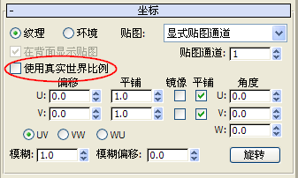 - 在“坐标”卷展栏上,确保“使用真实世界比例”已禁用。