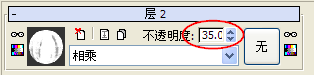 - 在“层 2”卷展栏上,将“不透明度”设置更改为 35.0。