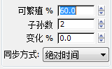 - 在“Spawn”卷展栏上,将“子孙数”更改为 2,将“可繁殖 %”更改为 60.0。