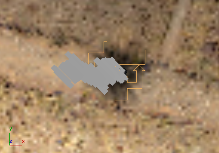 - 在“顶”视口中,在吉普车附近拖动以创建“粒子绘制”辅助对象。