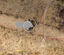 - 对于地形左侧(西)区域的公路中的纵长烧焦区域,绘制一个来回笔划(换言之,即两次划过纵长区域,但只运动一次“徒手绘制”光标)。