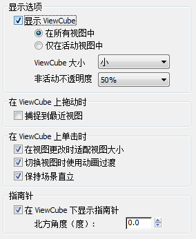 “显示选项”组中,启用“显示 ViewCube”(如果它尚未启用)。 在“在 ViewCube 上单击时”组中,确保启用“在视图更改时适配视图大小”和“保持场景直立”,然后单击“确定”。