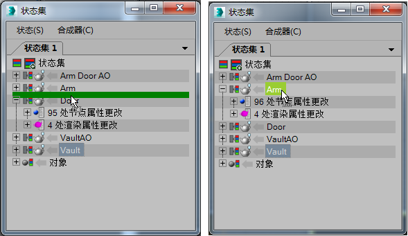 主状态下第一层的每一个项称为子状态,或直接称为状态。这些都是单个对象,将在场景中跟踪更改时使用。对象状态是一种特殊情况(如下所述),您可以使用该状态将对象(如灯光)传输到合成应用程序。