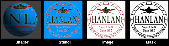 标签映射是一项将图像文件应用到某个曲面(例如,洗发剂瓶上的标签)和图像文件的遮罩部分上以使它仅覆盖曲面的某一部分的技术。“Stencil”