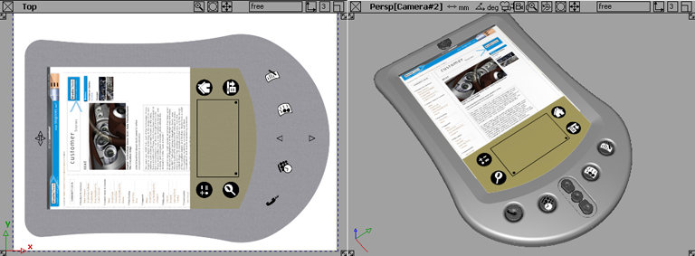 最初,我们使用纹理画笔创建了快速概念草图来为 PDA 创建塑料表层。