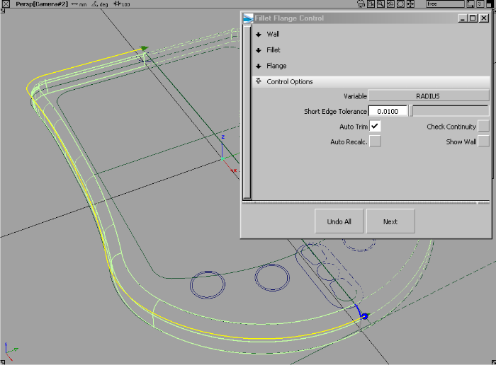 - 调整完圆角和凸缘特性后,请启用“Auto-Trim”,从而自动修剪顶面。
