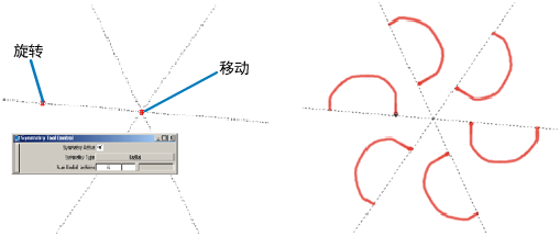 您可以绘制草图并自动进行笔迹镜像(两侧对称或放射对称)。