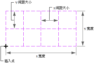 | 沿 Y 方向以固定间距大小布置格线 | 展开“Y 轴”,在“布置类型”中选择“重复”,然后输入“间距大小”的值。 |