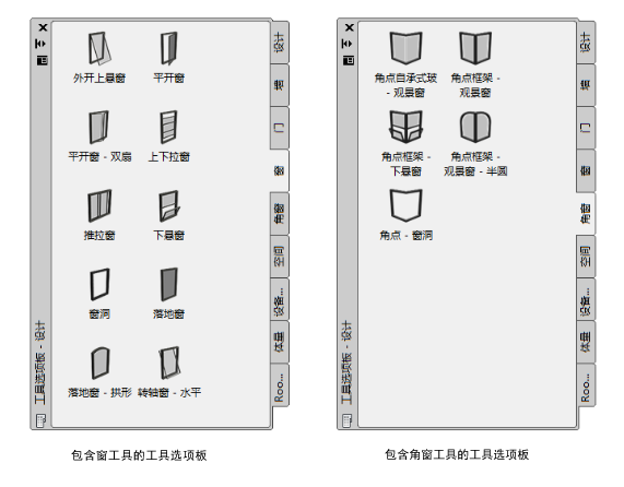 | CAD 管理员创建的自定义工具选项板 | 具有根据项目或办公室标准自定义的窗样式与特性的窗工具 |