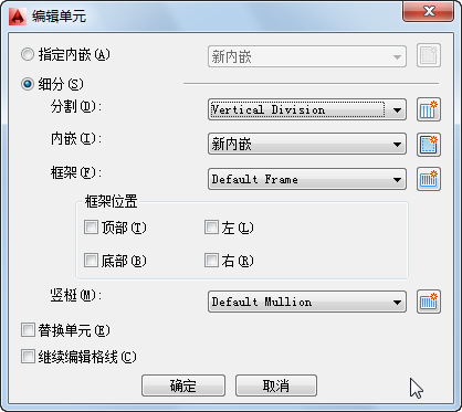 细分单元后,为创建的格线选择竖梃定义 | 选择竖梃定义。 |