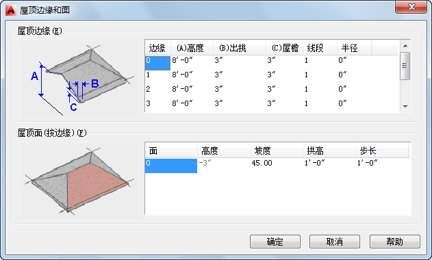 | 修改屋顶边缘的高度 | 选择屋顶边缘的“高度”,然后输入高度值。 |