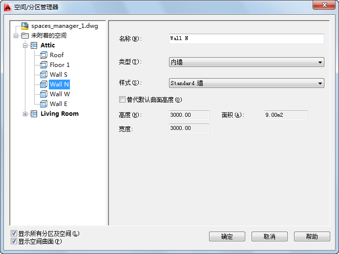该设置对复杂自由造型很有用,其中空间的天花板或楼板可以用多个曲面表示。