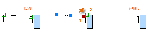 当您选择对象而不启动命令时,将显示夹点。夹点通常便于进行少量编辑。例如,下面的直线意外捕捉到错误的端点。您可以选中未对齐的直线、单击某个夹点,然后单击以指定正确的位置。