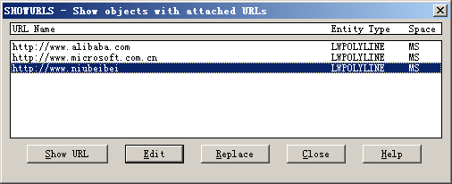 输入 SHOWURLS 以显示 Showurls 对话框。您可以单击单个 URL 以显示它,也可以单击一个或多个 URL 来编辑或替换它们。