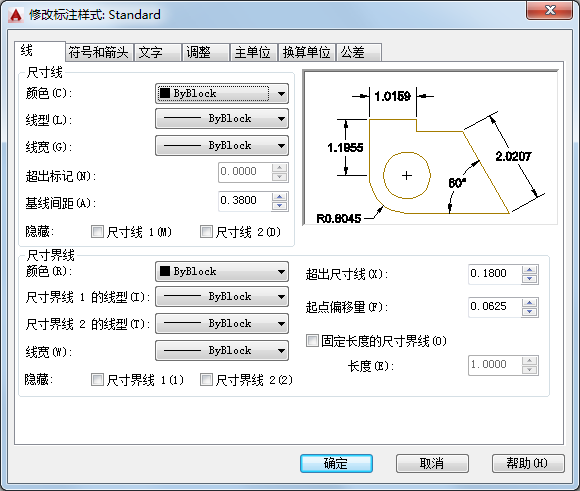 将默认标注样式命名为标准(英制)或 ISO-25(公制)。系统将它指定给所有标注,直到您将另一个样式设定为当前标注样式。