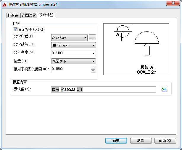 - 指定局部视图的边和局部视图标签之间的间隙。