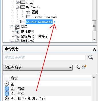 中的自定义设置”窗格中,拖动要添加到工具栏弹出型按钮中的命令。