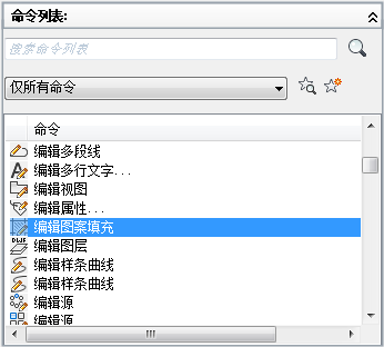 “命令列表”窗格的顶部是“搜索命令列表”框,该框使用户可以根据输入的文字字符串过滤“命令”列表。文字字符串将与命令名的任何部分匹配,并且结果会显示在“命令”列表框中。