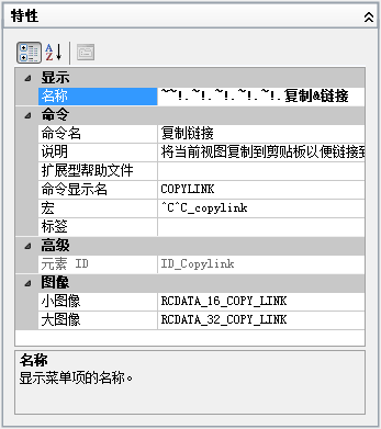 以下样例通过将波浪号 (~) 添加到“名称”特性中值的前面来禁用“复制链接”菜单项。