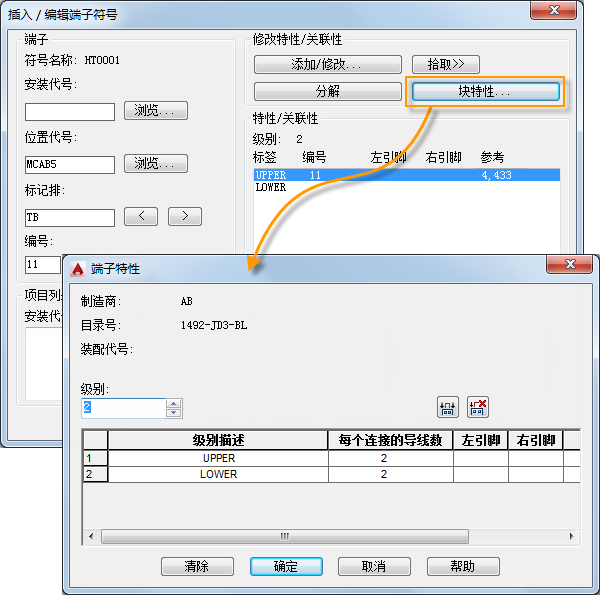 您可以在“插入\编辑端子符号”对话框上查看和编辑端子的特性。 查找