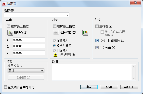 指定新块中要包含的对象,以及创建块之后如何处理这些对象,是保留还是删除选定的对象或者是将它们转换成块实例。