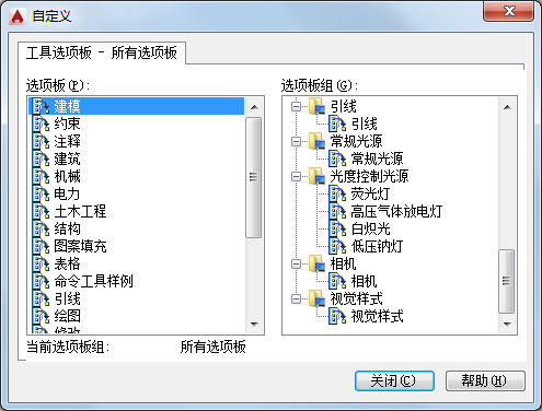 “工具选项板”窗口仅显示当前组的工具选项板,或者如果没有当前组,则显示所有工具选项板。