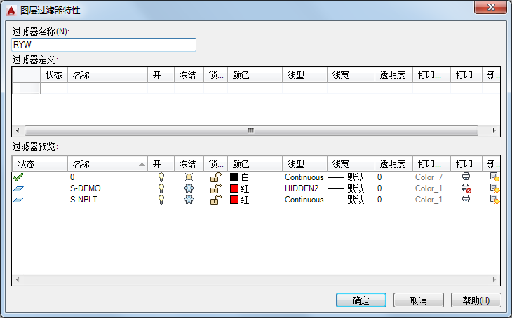 本示例显示了在“图层过滤器特性”对话框中设置的图层过滤器定义。