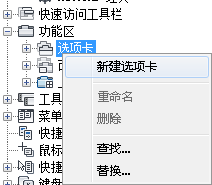 新功能区选项卡(名为“新建选项卡”)位于“选项卡”节点的底部。