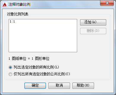 指定在对象比例列表中显示选定对象支持的所有比例。