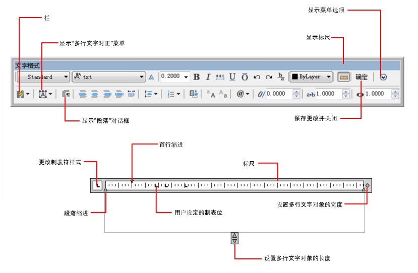 控制“文字格式”工具栏的显示。要恢复工具栏的显示,请在编辑器的文字区域单击鼠标右键,然后单击“编辑器设置”“显示工具栏”。此选项由 MTEXTTOOLBAR 系统变量控制