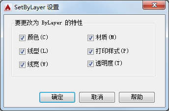 将选定对象的材质更改为“ByLayer”。(SETBYLAYERMODE=8)