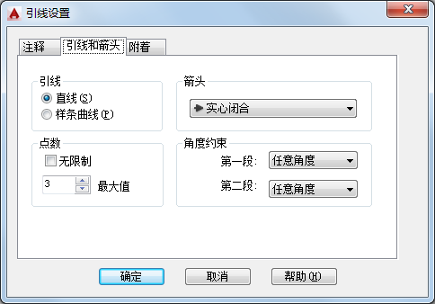 如果将此选项设定为“无限制”,则 QLEADER 命令会一直提示指定引线点,直到用户按 Enter 键。