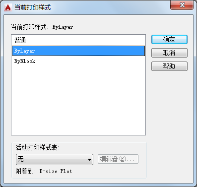 显示可以分配给对象的可用打印样式,包括默认打印样式 NORMAL。打印样式是替代的集合,这些替代包括颜色、抖动、灰度、笔指定、屏幕显示、线型、线宽、端点样式、合并样式和填充样式等。