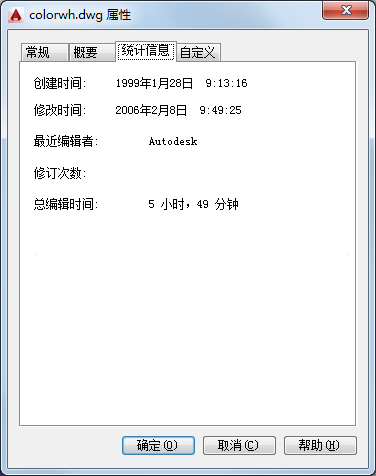显示编辑该图形的总时间。此值存储在 TDINDWG 系统变量中。