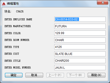 此对话框将更改特定块属性的值。若要更改位置、高度和样式等属性特性,请使用 -ATTEDIT。