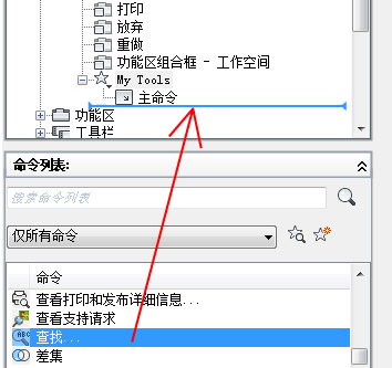 - 在“命令列表”窗格下,将要添加的命令或控件拖动到“<文件名> 中的自定义设置”窗格中的下拉菜单。