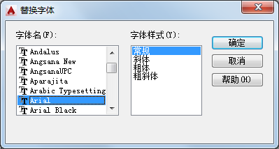 指定字体格式,比如斜体、粗体或者常规字体。如果缺少的字体是“大字体”,则此选项变为“大字体”并列出所有可用的“亚洲语言大字体”文件。