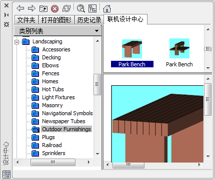 要访问联机设计中心,请单击设计中心的“联机设计中心”选项卡。“联机设计中心”窗口打开后,可以在其中浏览、搜索并下载可以在图形中使用的内容。