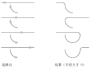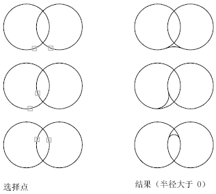 在圆之间和圆弧之间可以有多个圆角存在。选择靠近期望的圆角端点的对象。