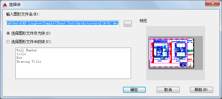 使用指定的整个图形文件或图形样板文件作为块定义。