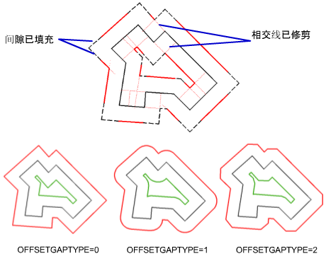 二维多段线是作为单个线段的偏移,从而在线段之间产生交点或间隙。要完成偏移,应修剪相交线和填充间隙。